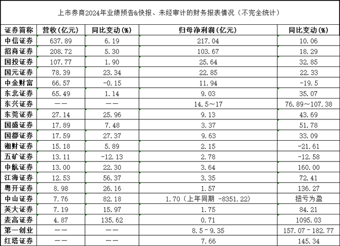 券商2024年成绩单抢先看:中信、招商净利超百亿 ,自营业务将成“胜负手”